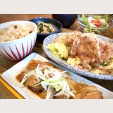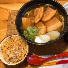 ラフテーとチャンプルー、ダブルメインのお昼の定食。量と質どちらも大満足!