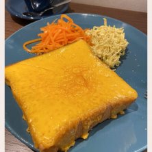 トーストセット(サラダ付き)チーズトッピング🍞🧀☕️ 耳まで美味しい厚切りパンに濃厚なチェダーチーズを載せて焼き上げてます 今回のサラダは定番の人参シリシリとカレー味のコールスローでした✨