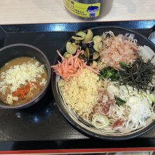 はいはい、2週間に一度の定期ゆで太郎堺筋本町店ランチ。 今日は半袖で良いくらい夏陽気なので冷やし薬味そばを。サービス券でカレールーを。 薬味そば美味しい〜‼️