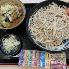 今日のランチは今月2度目のゆで太郎堺筋本町店で肉茄子せいろそばを。 大変美味しゅうございました&サービスクーポンゲット幸甚にございます😀