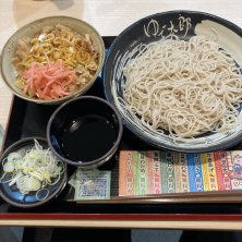 今日のランチは堺筋本町でゆで太郎。 季節のオススメです青森県産ネバリスター(とろろ芋)100%使用皮ごと粗ずり 月見芋丼ミニにもりそば大盛りとサービス券で海老天を。 お腹いっぱいでございます😋