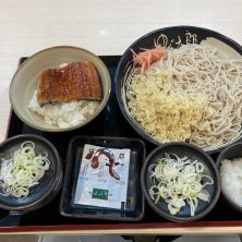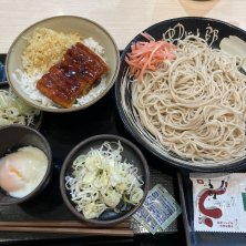 今日もゆで太郎でミニ鰻丼セットをそば大盛りで。サービス券で温玉付けて。 季節数量限定の鰻丼がある限り食べるぞ‼️😋