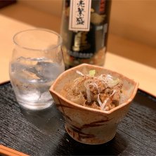 熊谷市星川 家庭料理ひろこの家 白子とわかめの煮びたし 天覧山の立春朝搾り♪