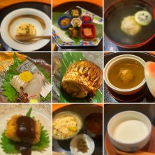 夫の誕生日🎂本人の希望で和食のお店 割烹料理なのかな? 前日は大雨警報が出ていたので、キャンセルした方が良いのか迷ったけど、夕方には雨も上がり予定通り行けました。 お料理全部美味しかったです❗️ 初めの一皿 クリームチーズ 前菜 さわら きゅうりのみどり酢 すずき 鯛ちり 山芋の養老蒸し 稚鮎 蓼酢 海老ととうもろこしの炊き込みご飯 赤だし 抹茶のムース