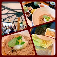 長野県安曇野市 大王わさび農場の園内に有る山葵料理の店、湧水飯釜 大王庵の本わさび飯。 農場内に湧き出る北アルプスの雪解け水を使用した湧水で炊いたご飯と味噌汁、薬味類(鰹節・青葱と海苔)、漬物、山葵のほろっこ漬け、山葵沢庵と煮物がセットになったこの店の1番人気メニューかつ看板メニューであります。 料理が出る迄に山葵を摺り下ろし、来たら御飯の上に薬味類、摺り下ろした山葵と醤油を乗せて食べます。 山葵その物の素材や風味の味わいに、鰹節の美味しさが引き立って美味しかったです。