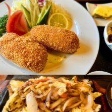 クリームコロッケ定食、野菜炒め定食
