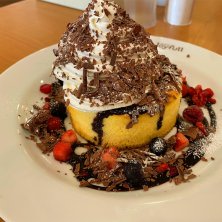 濃厚ショコラとベリーの窯焼きパンケーキ これも食べたいと思っていたメニュー。 食べごたえがあって美味しかったです。 ホイップクリームの量にも満足で しかも中にはチョコアイスが入って 美味しい! ベリーの酸味もまた良い😋