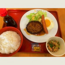 ソーセージエッグハンバーグプレート ドリンクバー付き 良い組み合わせ! 納豆は追加注文。 以前より目玉焼きが よく焼いてるような。 変わらずの美味しさ
