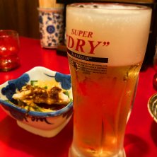 よだれ鶏でちょい飲み。おつまみも充実していて、生ビールも気軽にいただけます。
