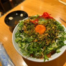 デラックス丼:どて丼の上に豚カツプラス多量のネギに卵