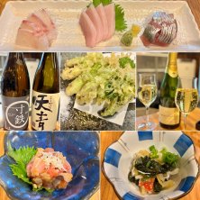 今月2回目の定例会。 元祖メンバーにお祝いしていただきました🥂 日本酒クーラーの中にワインボトルを発見💡クリスマス発注の残りとのことで、驚くほどリーズナブルに提供していただき、思わず笑顔に☺️ 春菊とタラの芽の天ぷら、そしてニシンのお刺身。料理から、静かに春の気配を感じるひとときでした。