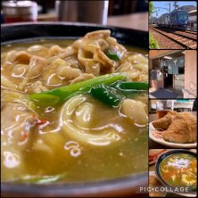 【てんぐ食堂】ぶたカレーうどん、いなり2個 春の陽気に誘われて、鴨川を歩いた 京都駅から七条大橋、ズンズンと下鴨通り越し