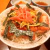 お茶漬け膳 お総菜4種(見切れましたが😅)、お刺身盛合せは中トロ、帆立、サーモン。お茶は緑茶、ほうじ茶、烏龍茶から1種類を選ぶ(私は烏龍茶)。好きずきですが、お茶漬けにはせずに食べました。お総菜は美味しいし、刺身は新鮮でレベルが高く大満足