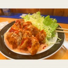 某店の看板メニューのサクサクチキンを食べました。 ソースがトマトソースに変わっていてこれはこれで美味しかったのですが、お米が欲しくなる味、お酒に合わすなら何が良いだろうと考えてしまいました。 次は赤ワインで美味しくいただきます。