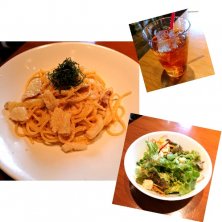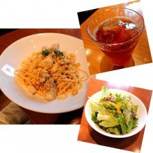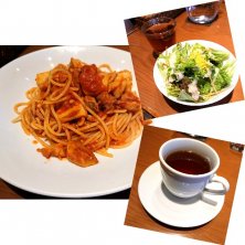 今日の市ヶ谷お昼ごはん…。 外濠公園沿いのイタリアン🍴 ・タケノコと鶏もも肉の🍗 トマト煮込みソース🍅 ・野菜🥬サラダ🥗 ・麦茶🍵 ・紅茶☕ イタリアンに暖かい麦茶…最高です❗