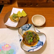 心ばかり (い 棒鱈万年煮 大根 法蓮草) ろ ふぐの唐揚げ しし唐 は 雲子茶碗蒸し 鼈甲餡 生姜 に 鮟肝 玉葱入り霙ポン酢掛け ほ 珍味三種盛り 梅水晶 黒造り 数の子松前漬け ※1人2品選択