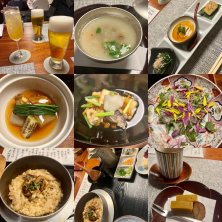 またまた友達が頑張って予約取ってくれました✨✨ 日本酒3種飲み比べで🍶 最初の枝豆豆腐のジュレから心を鷲づかみ❤️ 今回は夏らしく、さっぱりしたメニューでした✨✨ 鴨のサラダも定番の黄金チーズも、鱧の酢とり餡も爽やかだったし、冬瓜、ナス、つぶ貝のトマトジュレも美味しかった✨✨ シメの炊き込みご飯はコーンと帆立でした おこげもいい感じで完食❣️ デザートはマンゴーアイスに桃🍑 本当にこのお値段いいんですか?のコスパなんです なので予約は困難ラッキーに予約できても2か月先💦