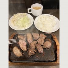 やっぱりステーキでいつものステーキとハンバーグのコンボを注文しようとしたら売りきれらしく レモンステーキ🍋 バラ肉っぽくあらかじめ味付けされているため ステーキっていうより味は違うが生姜焼き定食っていう感じだな🤔