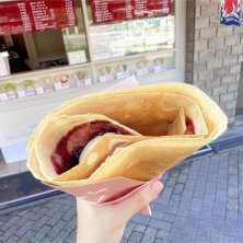 クレープ アイスストロベリー クレープ発作起きたので食べに行きました。みやこメッセ・平安神宮近くのお気に入りのお店。やっぱここのクレープ美味しい&コスパいい😍💕