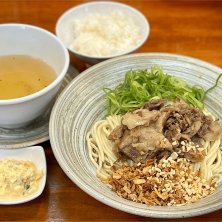 🍜黒毛和牛まぜそばwithフォンドボー 1,100円 気まぐれ限定商品 まぜそばには、A5和牛の牛すじ煮込みがホロホロの状態で乗っております。他には、九条ネギ、フライドオニオン等も乗っており少し味付けは濃いめ✋ ご飯、自家製タルタルも全てついてくるので、 ご飯に牛すじ煮込みを乗せて、自家製タルタルをかけ頂きました。 スープも身体に優しい感じで素敵でした☺️