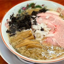 “会津ばんだいらーめん宮子店” ◻︎「鶏魚介ホアジャオらぁ麺」(1,100円) ◻︎「大盛り」(+150円) ◼︎まず、一口目で感じるスープの深い旨味に驚かされ、次にホアジャオの痺れが心地よく広がります。 中太ストレート麺はコシがあり、スープとの相性も抜群。 特に大判チャーシューとブロックチャーシューの二種類がトッピングされ、極太のメンマもシャキシャキで美味しいです。 スタッフの親切なサービスと清潔感のある広々とした店内も魅力的。