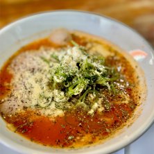 ⇨とまとらぁ麺950円 ⇨鶏白湯ベースのスープに バジルととまとと入れた一杯✨ 麺もパスタのように平打ち麺で太め🤤 イメージ的にはスープパスタのような 素敵な完成度でした🍝✨ 最後はチーズご飯をインすれば リゾットの完成✨ 一回で2度美味しい🤤