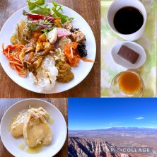 主人は早く出社。 近所で野菜ビュッフェのランチ。メインは鶏のレモン麹クリームソースを選択。 サラダ、ブルーベリードレッシング、ひじき煮、季節野菜の胡麻マスタード、人参しりしり、春雨マリネ、大根とひよこ豆スパイス煮、サラスパ、きのこバルサミコ、もやしと雑穀、いろいろ野菜カレー、ナスの皮の佃煮、野菜たっぷり麻婆豆腐、ご飯。おいしかった。 シャトレーゼ、旬八青果店、成城石井、スーパー、コンビニで買物。 帰宅、チョコ、サジー、ドリップコーヒー。 アメリカ在住の友人から写真。