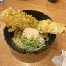 ベーコン天のせ釜玉うどん。 ベーコンがでかい!