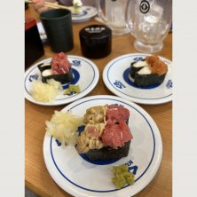 山かけまぐろ、ふり塩熟成まぐろ、サーモン。