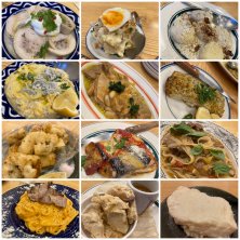 バイ貝のポテサラ カブのピクルス ハムとスモークたまご フィレンツェ風ホルモン煮込 鴨ロースト カルボナーラ 白いティラミス