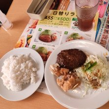 長女が頼んだの。 キャンペーン中のメニュー。 絶対に2人とも残すと思ったので、私は何も注文せず。案の定、ほぼ残しで私が食べましたー。 美味しかったけど、お肉祭りに濃いめの味付けで、胃をやられました(笑)