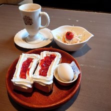いちごホイップトーストセット ディッシュサラダ 罪悪感満載なモーニング もうこれ食べない🤣