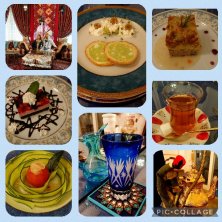 枝豆のスタッフドバゲットとキーウィとチーズの盛合せ モロヘイヤのスープとサフランライス 胡瓜とトマトのサラダ 鶏肉のミートローフとパスタグラタンの重ね焼き ブルーベリーとラズベリーのケーキと紅茶(紅茶のポットの取っ手にトルコ人の人形のカバーがかけてあって可愛い!) ラク(アニスの独特な香りのするアルコール45度の蒸留酒で、水で割ると透明なお酒が乳白色に変わる珍酒) トルコの民族衣装も着てみました😆