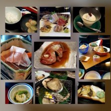 ・前菜五種 ・お刺身盛り合わせ カンパチ 鯛 ホウサン 鰆 ・郷土料理なめろう ・椀物 ・千葉県産ポークせいろ蒸し ・鮑踊り焼き ・金目鯛姿煮 ・天麩羅 ・長狭米コシヒカリ ・大アサリのお吸い物 ・お新香 ・ピーナッツプリン 2023/04/29 夕食