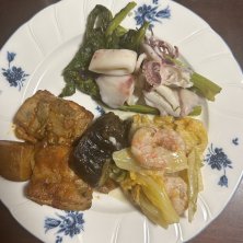 夜のメニュー。魚の2皿のコース。お腹いっぱいになってしまった。年寄りになって食べる量が減ってきてるな