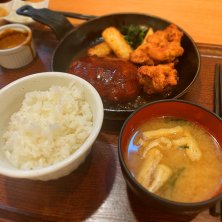 ハンバーグ唐揚げ定食。わんぱく盛りでお腹一杯
