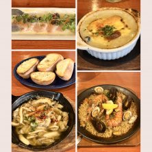 魚介メインのスパニッシュイタリアンなお店 予約してないから早めに来たけど正解だったみたい。6時過ぎたらやって来るお客さんにカウンターなら空いてますとか言ってたから ブリのカルパッチョ 小海老とキノコのアヒージョ(とバゲット) 牡蠣のグラタン オーシャンパエリア ワインはロベリアシャルドネで お腹いっぱーい 美味しかったですよー😆