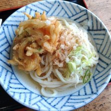 冷やしぶっかけうどん 中 税込616円 うどんを注文すると好きな天ぷらを1つ無料で選べたので、かき揚げを選択。大根おろしとネギはお好みで無料トッピングでした。 讃岐うどんらしくコシがあって好みでした。 時間帯もあって、着席して食べ始めた頃にワラワラと入店してきて長蛇の列になりました。