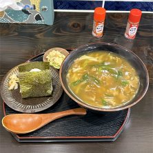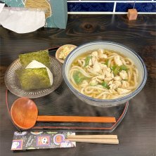 お昼は三七十庵さんでかしわうどんとおにぎり。 かしわうどんは一番出汁の味が感じられるんです。
