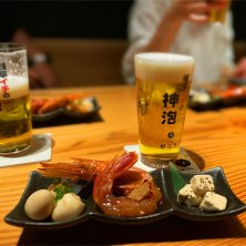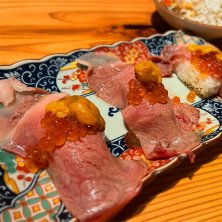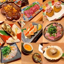 頼んだもの全て美味しかった😭💙 左上から順に ・仔羊麻婆豆腐 ¥979 ・和牛上たたき ¥1,078 ・蟹クリームコロッケ ¥979 ・牡蠣のガーリックバター醤油焼き ¥979 ・サーモンの親子レアカツ ¥979 ・合法 生レバニラ ¥759 ・胡麻カンパチ ¥1,078 ・自家製プリン ¥490 ・ミニ バスクチーズケーキ ¥539 ・帆立バター醤油 ¥539