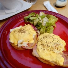 新潟の朝はこちらでモーニング 義母が、念願のふわふわパンケーキを食べて大喜び こちらの写真は、相方セレクトのエッグベネディクト 大阪には和泉に1店舗しかないのね 宝塚のほうが行きやすそう