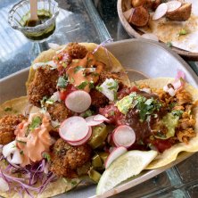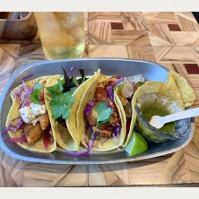 シーフードタコス🌮!昨日は丸の内出社。丸の内ハウスにある絶品タコスを提供してくれるこちらでチームメンバーとランチ。白身魚のフライ、ポップコーンシュリンプ、アピポキ、きのこのマリネの4種のタコス。ドリンクも、スープもついてきます。コーントルティーヤがいい感じで付いてくるソースもイケてる!大満足!また来る!