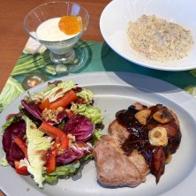 シゴオワに晩ご飯を兼ねて料理教室へ🤗 そんなこんなで、今回のメニューは… ☆ビーフカツレツ 〜市田柿のコンポート添え〜🐮 ☆カマンベールチーズのリゾット🧀 ☆グリーンサラダ🥗 ☆いちごのティラミス🍓 市田柿とは南信州の特産品の干し柿。 ビフカツに干し柿のコンポートやいちごのソースを添えるという絶対に自宅ではやらない調理法やったけど、これって案外イケるやん👍✨ 最近、居酒屋系のおっさんメシが続いておりましたが、たまには女子的なオサレ〜なお食事も悪くないわ🥰💕