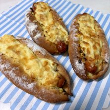 料理教室を予約したついでにパンのレッスンも受講することに…🤗 ☆ベシャメルソーセージドッグ🌭 ハンド系のパン生地にマヨキャベツ、ソーセージ、ベシャメルソース、ピザチーズをモリモリ乗せてオーブンにIN!! これはテンション上がるわ〜⤴️