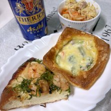 今宵はパン呑み〜🤗 ☆ガーリックシュリンプフォカッチャ(←パンのレッスンにて)🧄🦐 ☆グラタンデニッシュ(←神戸市内のパン屋さんで購入)🫕 ガーリックシュリンプフォカッチャのガーリックの香りがたまりません…😆💕 明日の外出時には匂いが残らないないよう気をつけないとね⚠️
