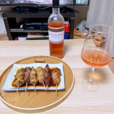 やきとりシバタのやきとりで、🇫🇷フランス産🍷ロゼワインでまったりやってます❣️ 😋🤙