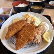 【アジフライと鶏唐揚げの定食】 ここんところなるべく少食を心がけているのだがこの日の日替わり定食をチョイスしたら アジフライが2尾に鶏唐揚げが3個と量もカロリーもちょいとヘビーだった… でも久しぶりに我慢してた揚げ物を食べれてとても美味しかった〜😋