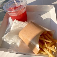 皆さま こんにちは( ꒪∀꒪)アチュイ💦 何か飲まなきゃ干からびる 考えることはみんな一緒だね 並びたくないけど ここしかないから並んだわよ ブラッドオレンジジュースと トリュフ塩のポテトフライ ジュースの氷がクラッシュじゃなくて 大きなロックアイスだから ちょっと嬉しい こう言ったお店ってさ クラッシュ氷が多くて 何気に溶けちゃうのよね 👵「こちらに並べばいいのかしら?」 と言った会話が聞こえたから E『私が最後尾みたいですよ☺️』 と声をかけてみた ↓