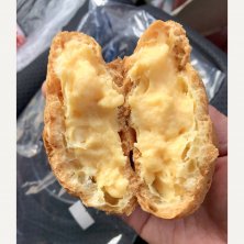 本日のイケナイお昼ご飯?? パン屋さんのシュークリーム😍 カスタードクリームたっぷり💕 空洞がない コレで¥130 コンビニよりも安い👏 しかもシュー皮も美味しい💖 一昨日買ったので冷蔵庫に入れて置きました。 シュー皮はしっとりしちゃったけど、それでも美味しい🤤