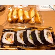 今宵は素泊まりホテルなので、近くのスーパーの割引になったお惣菜で晩御飯。 キンパ 目玉焼きフライ 半分だけ食べました… けど…これ今日はダメだ🙅♀️ いつもなら美味しく食べれるけど、今日は気持ち悪くなって途中で食べるの辞めました。 私、疲れてる😭 疲れてる時は油物が敵面ダメだなぁ…(><) 他に『出汁が美味い!白菜のお浸し』食べました。 もう眠いよ… 今日は早く寝よう。